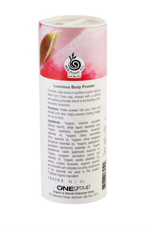 Luxurious Body Powder is a smooth, silky blend of certified organic cornstarch and white clay,